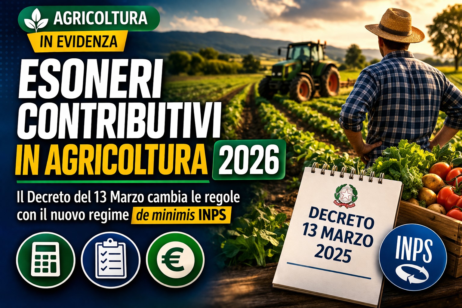 • Decreto Ministeriale 13 marzo 2026 – MASAF, Gazzetta Ufficiale n. 67 del 21 marzo 2026: istituzione del regime «de minimis» per esoneri contributivi INPS