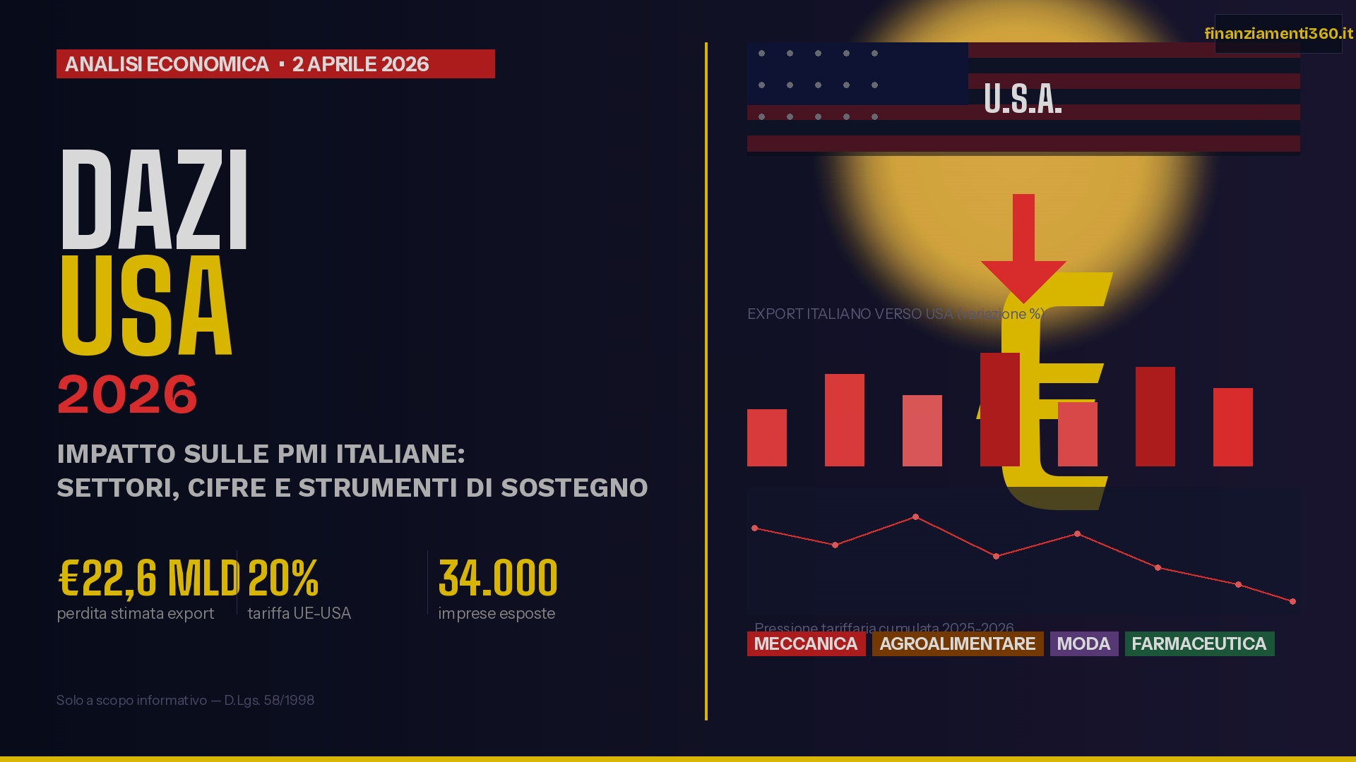 - Garanzia Italia Dazi: garanzia pubblica sulle linee di credito bancarie per coprire perdite da riduzione export